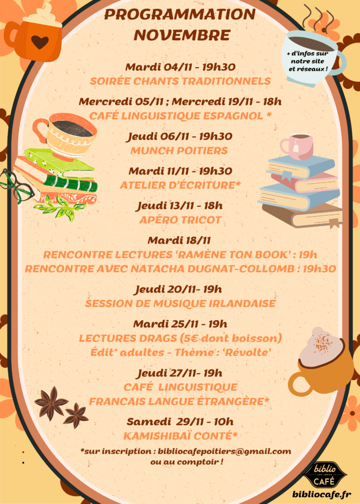 L’agenda du mois au biblio café