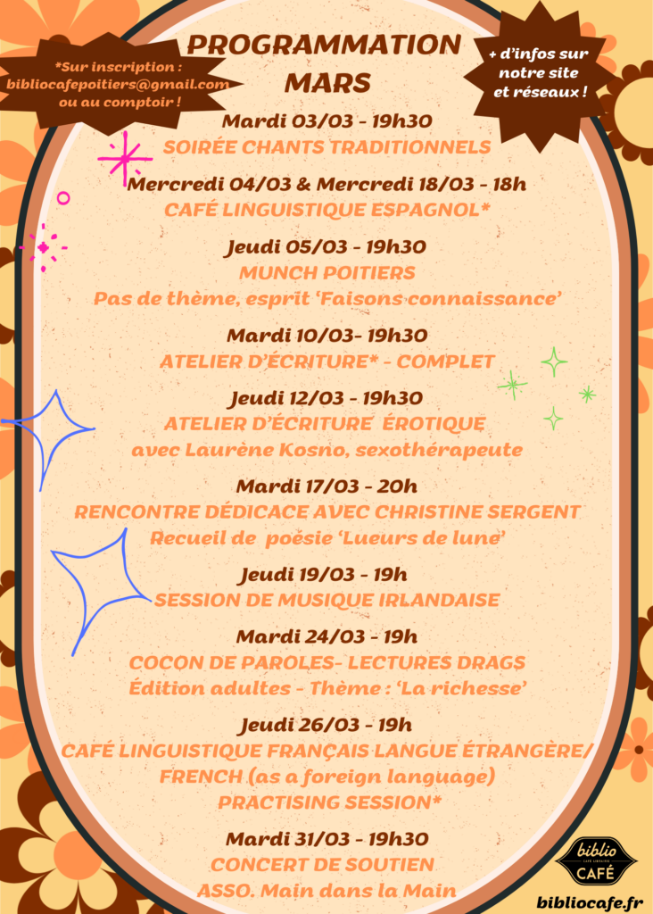 L’agenda du mois au biblio café